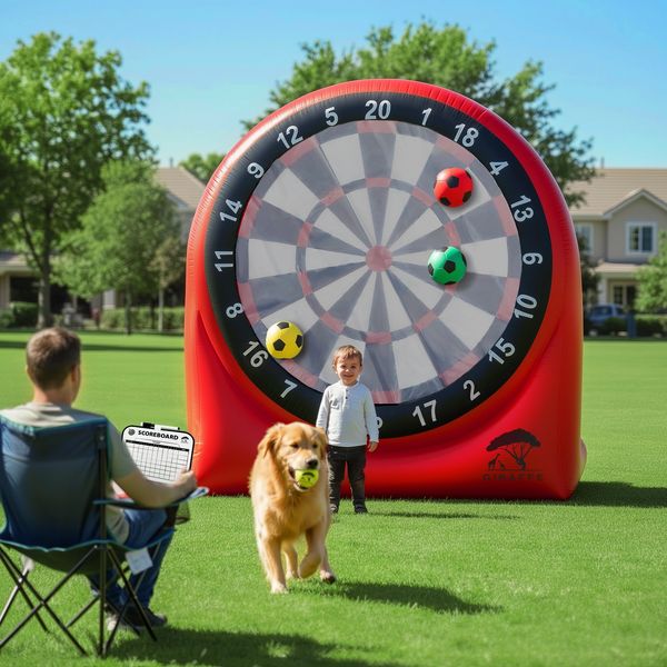 Oversized XL giant kick darts game inflatable, 6.8ft tall x 6.6ft wide.